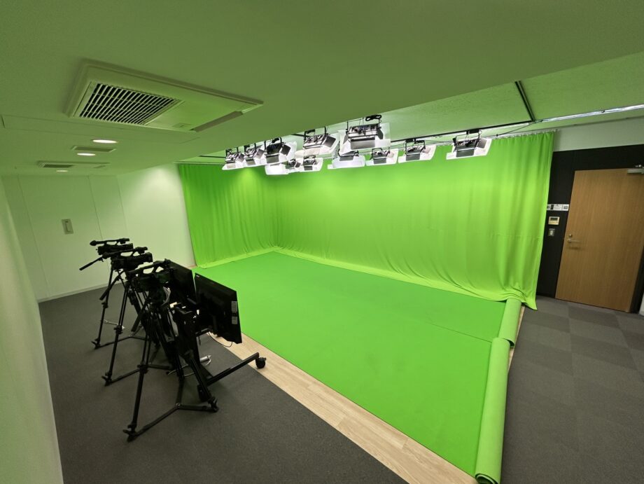 ・グリーンバック,白レンガ背景どちらにも対応、美術セットの持ち込みも可能